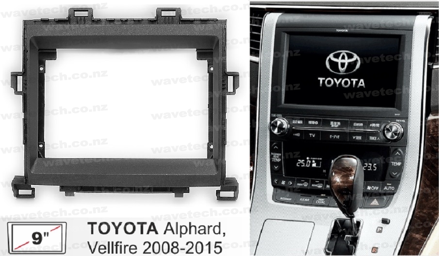 Designed for the fitting of a universal 9" Trapezoid shaped stereo to Toyota Alphard / Vellfire dash surround.