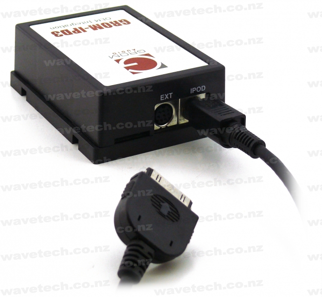 The GROM IPD3-SUB allows iPod integration through the vehicles factory stereo changer port.
