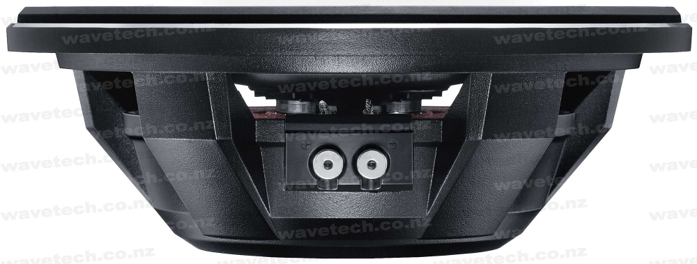 Kenwood's flagship subwoofer, the KFC-WPS1200F, delivers unbelievable performance as it boasts a peak power output of 1400W. Reassuring durability even during long hours of high-output operation can also be enjoyed as the speaker unit is designed to dissipate heat effectively away from the motor system. A die-cast aluminum basket is employed to further reduce heat and improve power-handling characteristics while multiple fins enhance ventilation and rigidity for supporting the large motor. Four vents are positioned around the basket to ensure that the entire subwoofer is always properly cooled. Compared to existing models, the new flat subwoofer lineup are approximately 40% slimmer in height. This makes them ideal for installation in the tightest of spaces such as behind or under the seats. The subwoofer also uses highquality materials such as a carbon-fiber cone and aluminum-cast basket for long-lasting reliability