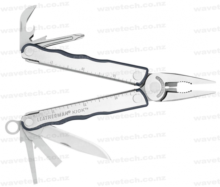 Efficiency is the name of the game with the Leatherman Kick. Thoughtful engineering means blades are longer, sharper, and stronger. A tapped screw allows you to choose a pocket clip (sold separately) instead of a belt sheath. The Kick has the same super-strong pliers as larger Leatherman tools, but with a narrow shape and light weight. The Kick is perfect for smaller hands with big jobs to do..
