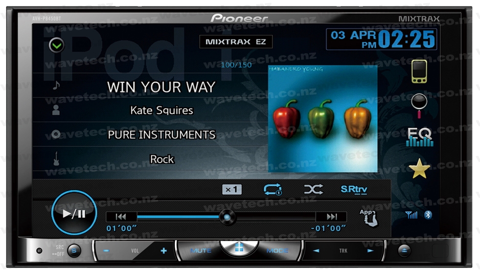 Stay connected to your Smartphone in the car, courtesy of built-in Parrot Bluetooth. Make/receive phone calls hands-free or stream your music from your Smartphone to your car speakers. The AVH-P8450BT will connect with up to five different phones and store 1,000 contacts from each phone.