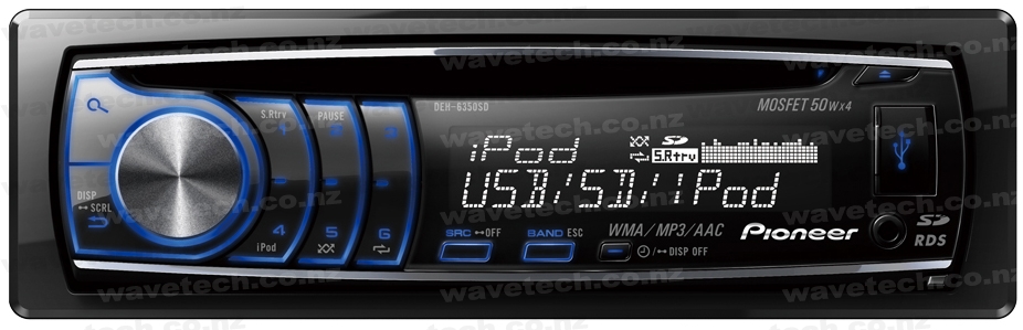 iPhone, iPod, SD-card, (32GB) USB device, MP3 player or CD: enjoy your music collection on the road, however it’s stored with the Pioneer DEH-6350SD Car CD Player.