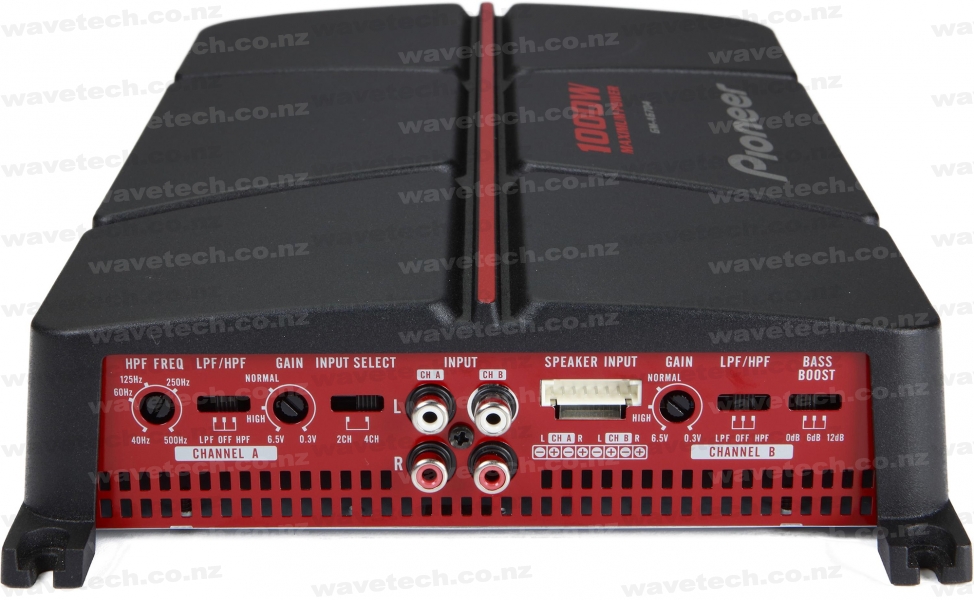 The 4-channel GM-A6704 delivers a whopping 1000 watts max - plenty of juice to power your speakers. It's also got built-in low-pass/high-pass crossovers, speaker level inputs for easy connection to an OEM headunit and oversized power terminals.