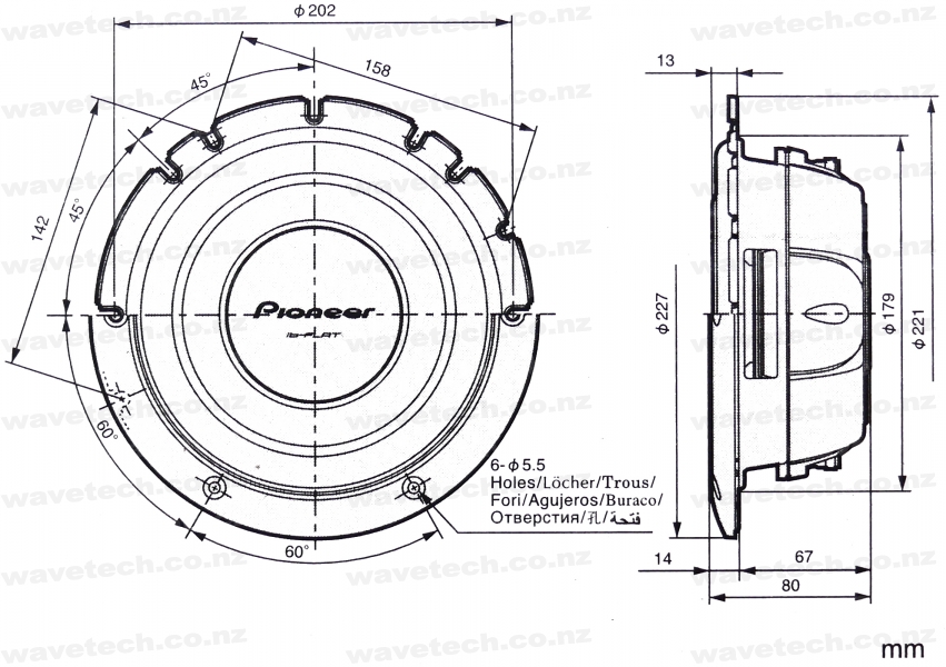 This 8" shallow subwoofer handles 600 watts max., 150 watts nominal power, and delivers deep bass with top-notch sound quality thanks to features like Pioneer's MICA injection-molded resin which gives it the ability to produce accurate bass.