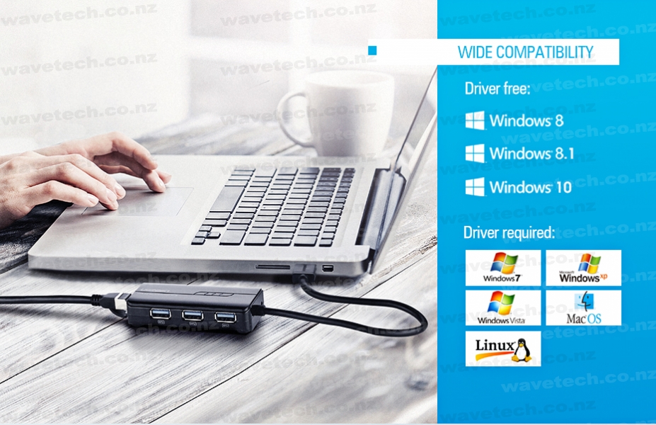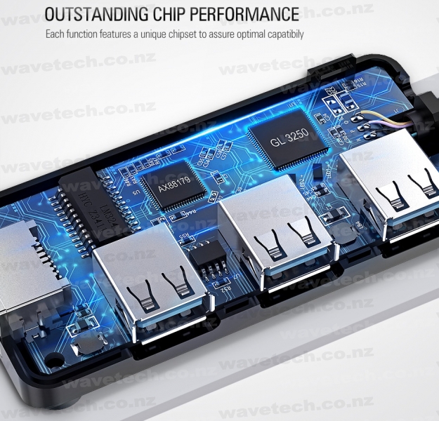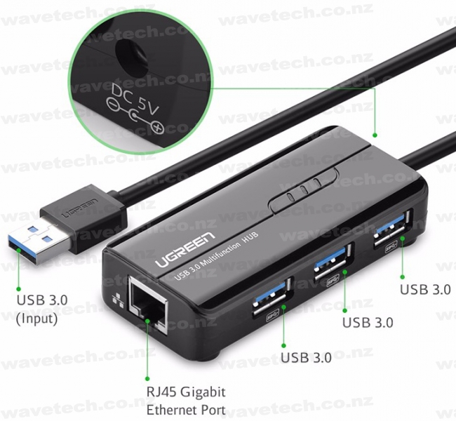 Add more peripherals to your device using this 3x USB 3.0 + Gigabit Ethernet Hub.